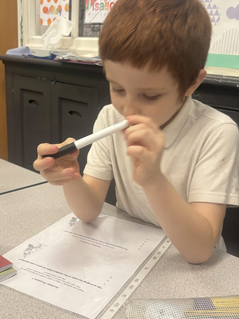 This morning we have had a go at challenging ourselves with some maths problems. These tasks require determination but with a little bit of perseverance the children were able to problem solve their way through! Just a bit of trial and error to get to the solutions!