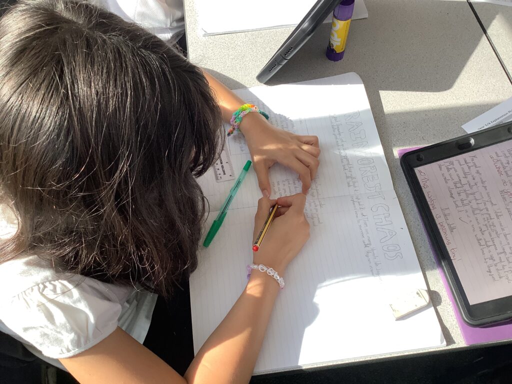 Last week, we worked extremely hard drafting, critiquing and re-drafting our final product for this term’s expedition. 3SG focused on wildfires and were particularly inspired by the artist Stephanie Peters. We used long brush strokes and layered paint to create a similar effect to Stephanie.